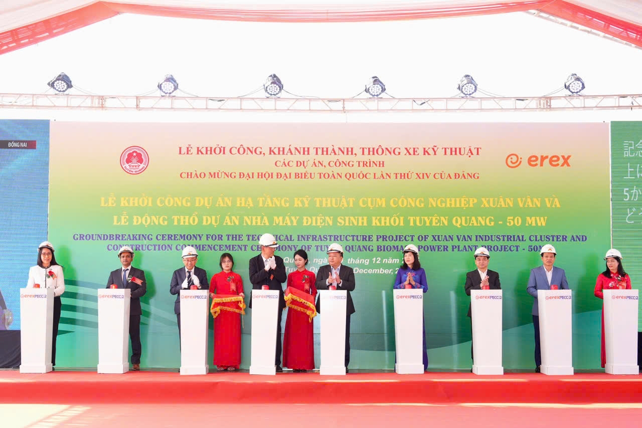 Sáng ngày 19/12/2025, Công ty TNHH Điện sinh khối eREX Tuyên Quang tổ chức lễ động thổ Dự án Nhà máy Điện sinh khối Tuyên Quang tại cụm công nghiệp Xuân Vân, xã Xuân Vân, tỉnh Tuyên Quang. Buổi lễ diễn ra trong không khí chào mừng Đại hội đại biểu toàn quốc lần thứ XIV của Đảng, cùng với sự kiện đồng loạt khởi công, khánh thành, thông xe kỹ thuật các dự án, công trình trên cả nước và sự kiện khởi công dự án hạ tầng kỹ thuật cụm công nghiệp Xuân Vân.