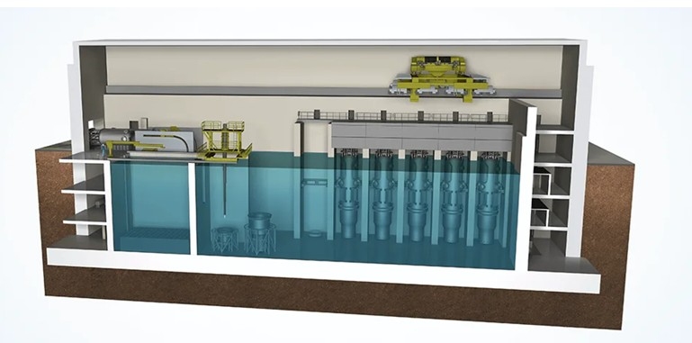 Lò phản ứng SMR được lựa chọn có cấu hình tương tự như các nhà máy điện hạt nhân nước áp lực (PWR). Mỗi mô-đun bao gồm một lò phản ứng và lò hơi đặt trong lớp vỏ bảo vệ an toàn. Tất cả sáu mô-đun được đặt trong một bể nước lớn, vừa cung cấp làm mát, vừa bảo đảm an toàn thụ động khi mất điện. Cả sáu mô-đun được lắp đặt trong cùng một gian máy chính.