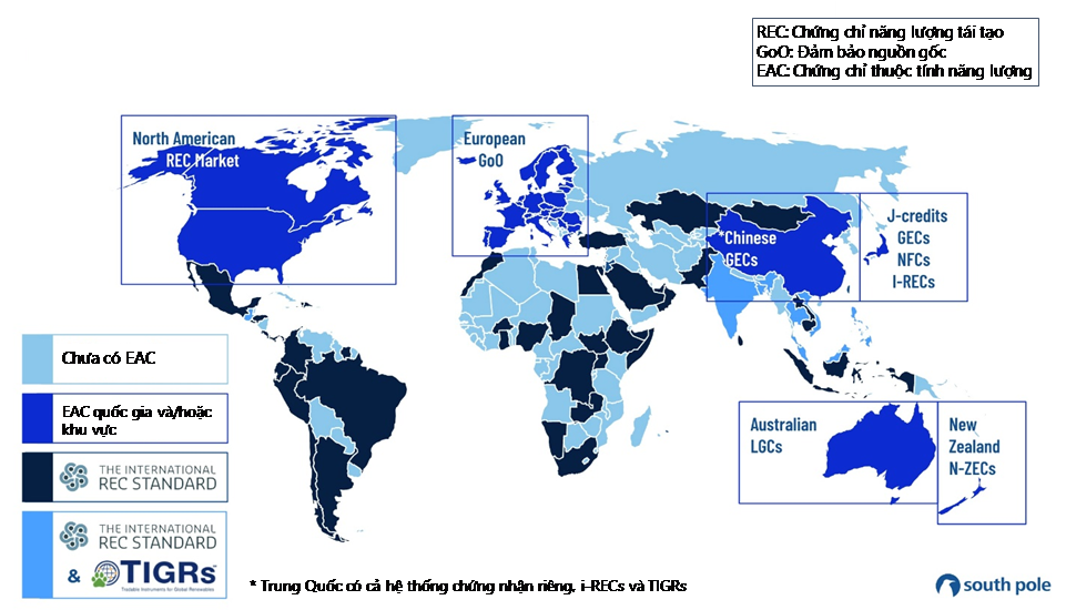 Hình 2: Các loại chứng chỉ thuộc tính năng lượng (EAC) trên thế giới [13]